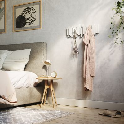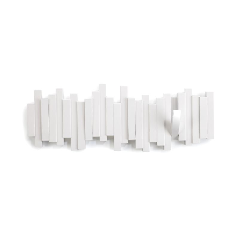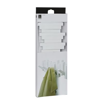 Keeping entryways with all the coats and accessories neat and organized is always a challenge, especially in small spaces. Transform your entryway into a tidy and stylish space, Introducing STICKS Multi Hook by Umbra. STICKS Multi Hook is a sculptural and yet functional wall coat rack that will provide you with ample hanging space in virtually every area of your home, office or dorm room. This versatile and decorative coat hanger accommodates all your personal hanging needs such as coats, scarves, purses, umbrellas, bathrobes, towels, accessories or even light weighted cleaning tools like brooms, sweepers & more. The deceptive design of STICKS looks at first glance like a modern piece of art until it boasts its clever design with 5 flip-down hooks which can be flipped up when not in use, creating a clean, seamless profile that’s great for tight spaces or minimalist décor styles. Each flip-hook holds a surprisingly 5 lbs. load per hook making it a strong helper to keep your home better organized. Available in a range of finishes, this coat rack constructed of molded wood with 5 flip-down hooks measures 19 1/2-inch by 7 1/4-inch by 1-inch. Stick comes with mounting hardware making installing it super easy and fast. The hidden mounting hardware gives this contemporary coat rack a seamless, floating look. Order STICKS Multi Hook today and start organizing and decorating your home with this eye-catching modern design. From the Designer David Quan: I designed this product after the many house parties I attended where there was never enough space to hang jackets. About Umbra: A global product design company providing original, modern, casual, and functional design for the home.