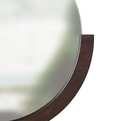 Umbra Mira Wall Mirror, Decorative Mirror for Entryway, Circular Mirror with Wood Frame on the Bottom Half, Natural Finish