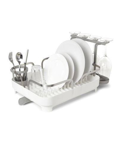 This dishrack is made of molded plastic and has a stainless-steel frame making it both durable and easy to clean. Holster has a 15-plate capacity, utensil storage, moveable stemware holder, a multi-purpose side tray and dual position drain spot. With soft, curved lines, this low profile, molded plastic caddy is a modern but approachable piece for everyday kitchen use. Order it today for a simplified approach to drying dishes, utensils and stemware. About Umbra: A global product design company providing original, modern, casual, and functional design for the home.