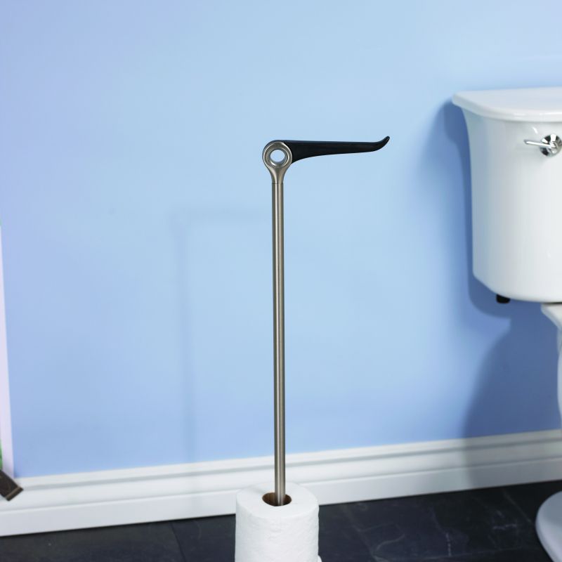 Свободностояща поставка за тоалетна хартия с тежка и стабилна основа.