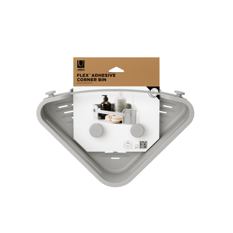 UMBRA FLEX ADHESIVE Ъглов рафт за баня с лепилни ленти, сив