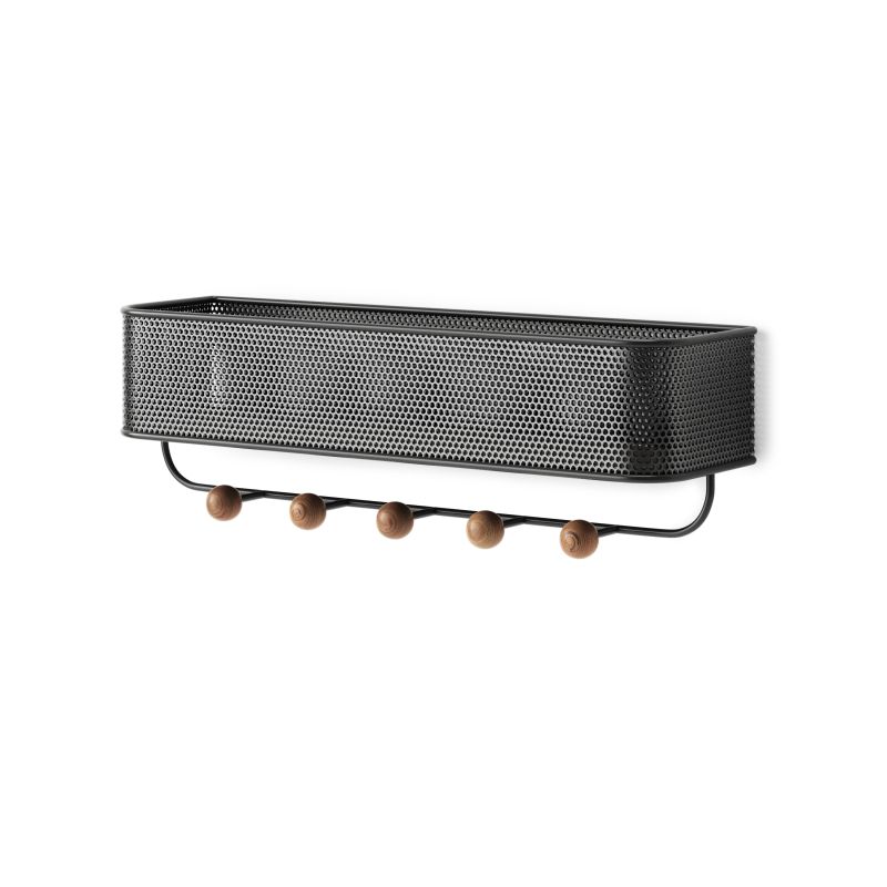 Estique разполага с перфорирана метална кошница за съхранение на вашата поща, портфейл, мобилен телефон и други малки аксесоари, заедно с 5 куки с дървени топчета, които са идеални за окачване на вашите ключове, връзки, каишки за кучета, както и шалове, шапки и връхни дрехи.