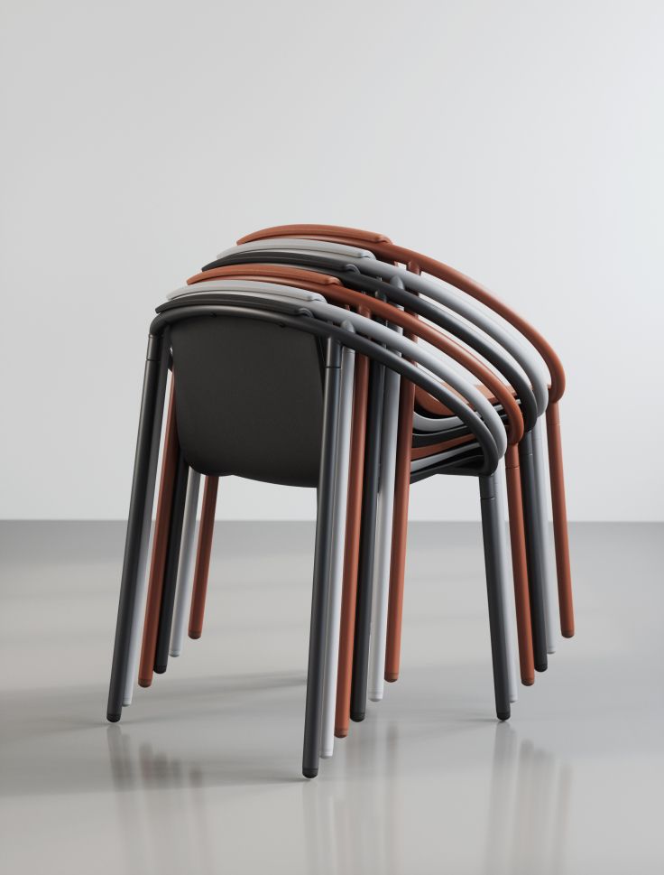 RINGO се отличава органичната форма на огънатата метална рамка. Този привличащ вниманието стол е от формован композитен материал от смесени дървесни влакна и устойчива на ръжда метална рамка.