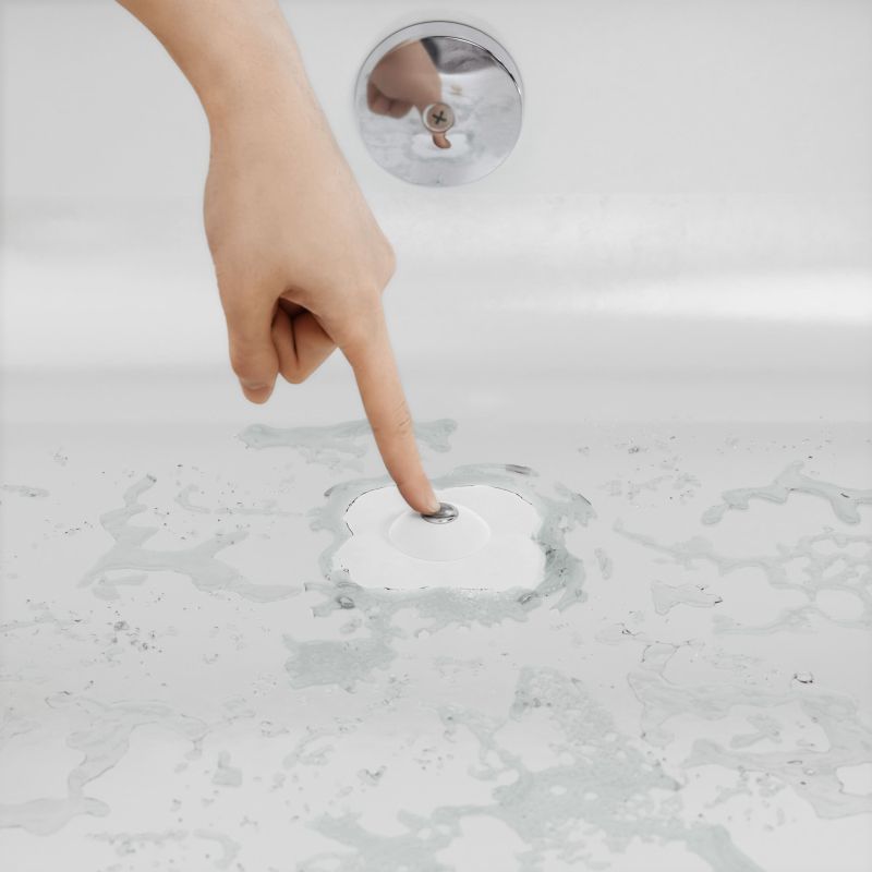 Достатъчно е да поставите Bloom в стандартния сифон на вана или душ. С леко натискане в центъра превключвате между режим „уловител“, който задържа космите и предпазва от запушване, и режим „тапа“, който уплътнява отвора и задържа водата.