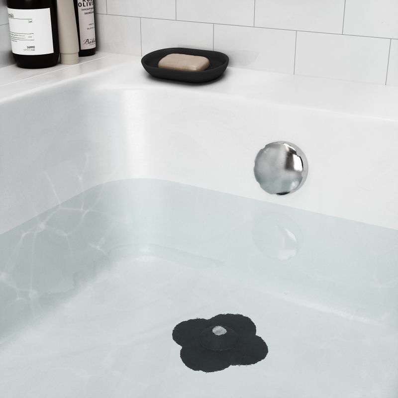 Достатъчно е да поставите Bloom в стандартния сифон на вана или душ. С леко натискане в центъра превключвате между режим „уловител“, който задържа космите и предпазва от запушване, и режим „тапа“, който уплътнява отвора и задържа водата.